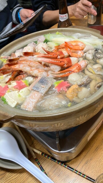 毎年恒例の会社の同僚と日帰りスキーのあとの越後湯沢での懇親会です。海鮮寄せ鍋大(4〜5人前)を事前予約し楽しみました。スキーのあと体が冷えていることもあり、めちゃくちゃ旨いです。刺身や舞茸天ぷらも最高。