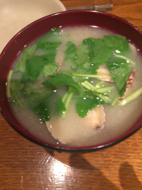 久しぶりにシメのおむすび村。広島菜と塩サバ、貝汁を注文。おむすび1つ240円になっていました。