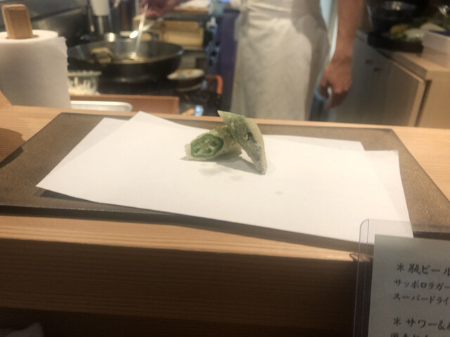 カウンターでの天ぷらは揚げたてをすぐ食べれてうれしいですね。