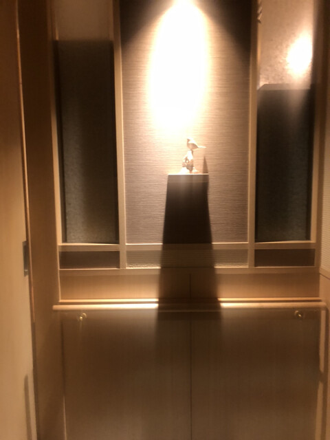 こちらの場所は表通りに面したビルのB1Fにございます。ビル正面外側の階段を降りて右手の入口の扉を開けると鳥をモチーフにしたオブジェが鎮座してございます。
