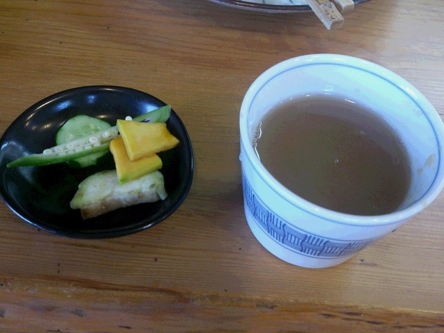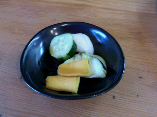 で『暑いので塩分補給に漬物をどうぞ』とうれしい気遣いのサービスを!