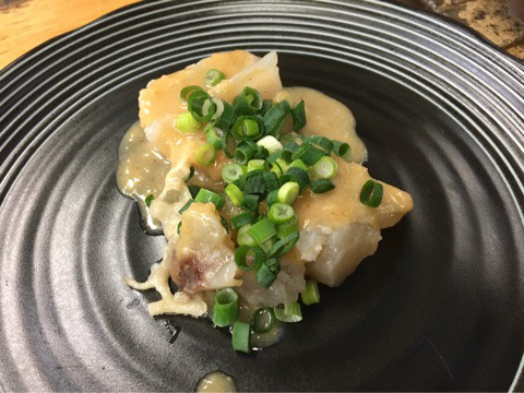 ほんのり生姜の風味がきいた酢味噌タレも美味である。