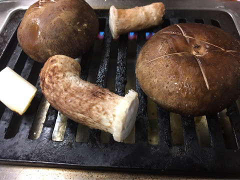 この日は玉ねぎと椎茸が用意されていた。 巨大な肉厚の椎茸からは、みずみずしい汁が滴る。