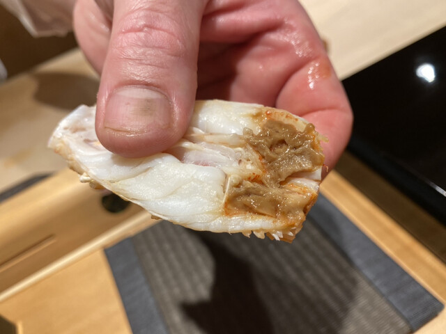鮨店にしては照明も明るく、大将とのテンポの良いおしゃべりも楽しめ、非常に心地よく過ごせた。