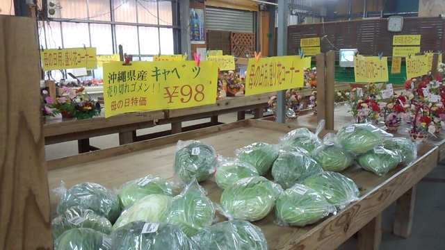 野菜売り場。母の日当日だったので盛り花コーナーも。
