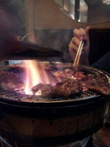 先日利用した際は一階の焼肉も二階のすき焼きも空席があったものの、この日は二階の椅子から階段、入口まで待ちのお客さんで溢れていた。