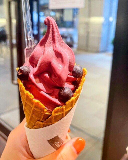 トシヨロイヅカの自家製ブルーベリーを使用したブルーベリーソフト!