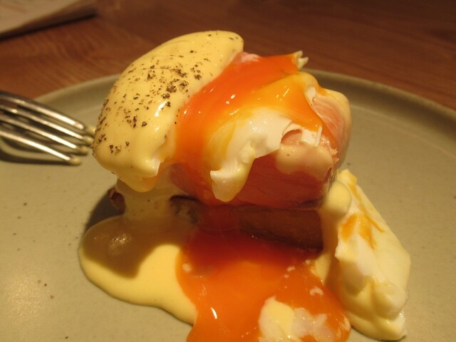 なるほど~、ナイフを入れると卵黄がとろりと出てきて