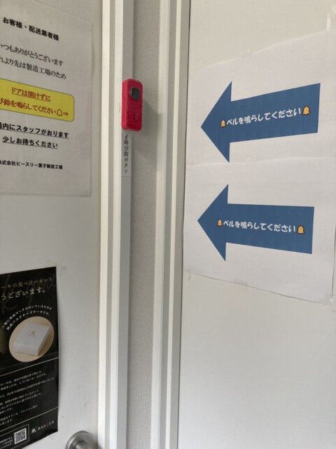 半分スチール、半分ガラスのドアになにやら張り紙が。