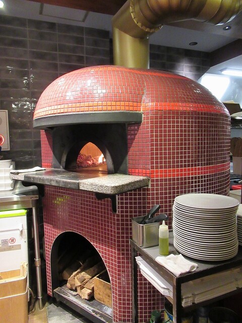 お店に入るとすぐに赤いタイルを張り巡らした窯があります。
