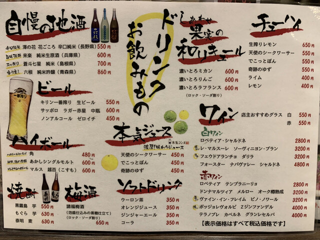 店主のおまかせ4800円コース(飲み放題付き)※店内禁煙
