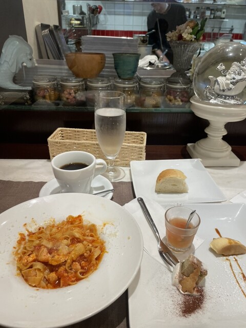 神コスパです。前菜 パン パスタ デザート3種盛り 珈琲か紅茶 がついて1300円!!信じられない。京都東京であり得ない!大阪は凄すぎる。しかもお料理のレベルが高く美味しい。安かろう不味かろうではなく、美味しくて…安い!!ほんとに大阪の真髄を感じます。しかも接客が丁寧。昼休みが短かったから「急いで持ってきてください」ホールでアタフタしてるスタッフにお伝えしたら嫌な顔せず全部目の前にフルコース並べてくれました。1人写真撮影会です。いつも店前こは行列ができていて、何も知らず並んで見たらこの内容。行列の意味を胃袋で理解しました。
