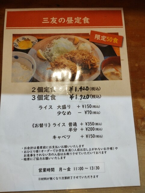 割烹 三友(人形町、水天宮前、茅場町/食堂、コロッケ、とんかつ)