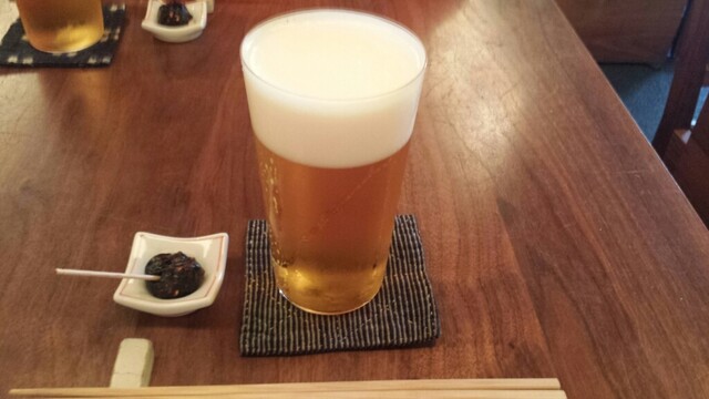入ってみても、夏休みだから子どもは多いし、出てくるのは遅いしで、普通のお店。でも、ビールが遅れると「遅くなってすみません。」と男の店員さん。注文の品を持ってくる度に、すみませんの一言…とても腰が低いのです。