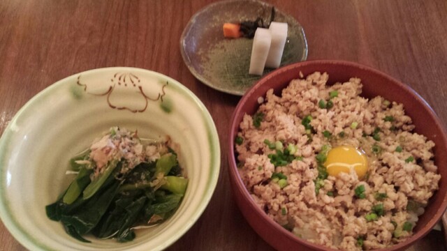 なんというのか、それといった特徴がなくてするするとはいるのです。なんてことない、普通のお味なのです。鶏そぼろ丼も味が薄い!よくある丼たれの強い味がないのです。お友だちの天丼も見たところ丼たれがあまりかかってなさそう。