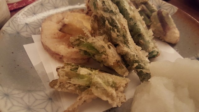春野菜と白魚の卵とじ、里芋の湯葉あんかけ、芝エビのかき揚げ、野菜の天ぷらでビールをいただき、もりそばで〆る。