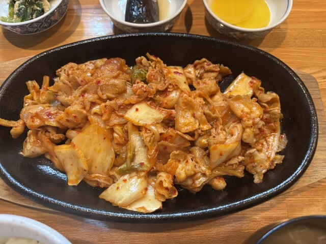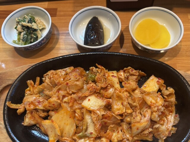 豚キムチは熱々のテッパンに乗ってきて辛味も程々で好きな味です。