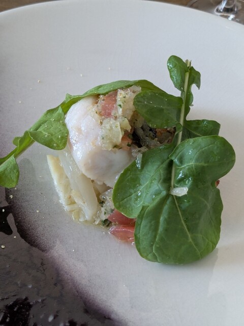 どれも凝った料理でとてもおいしかったです。特に、豆の和え物と鯛ポワレ、シュークリームがよかったですね。食器もかっこいいものばかりで、冷たい料理は冷やしたお皿、温かい料理は温めたお皿で提供され、シェフの気配りが感じられます。全体的に大満足の料理でした。ちょうど4月の半ば、窓から入る風も心地よかったです。