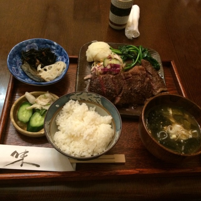 年の始めに美味しい‼️ サ−ロインステーキ300g、ハラミ200gライスコースで頂きました。