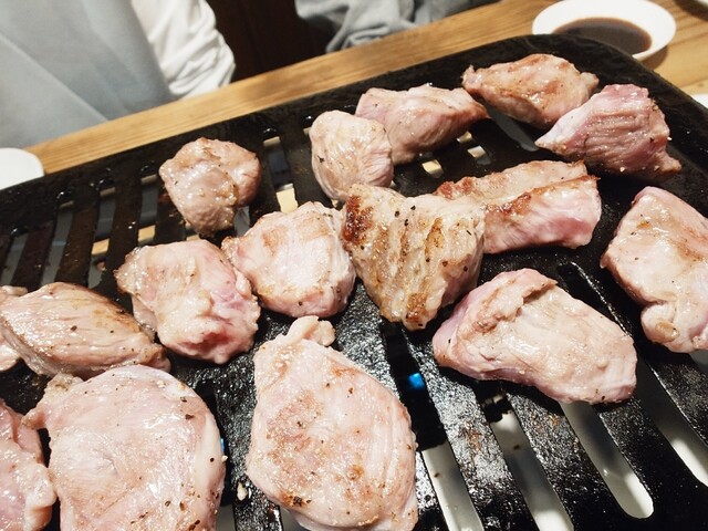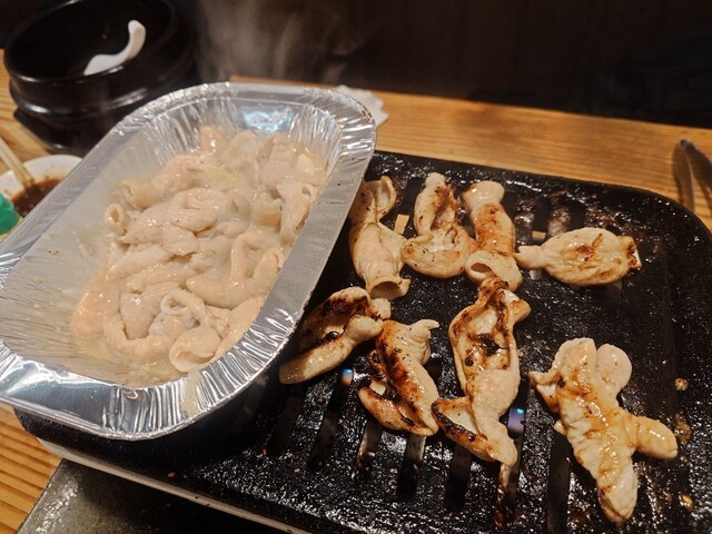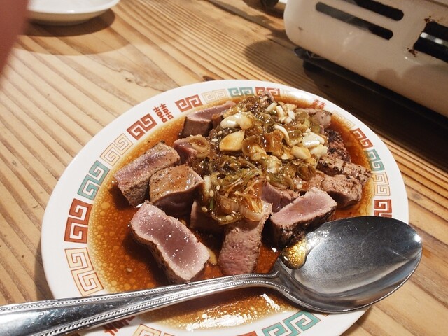 予約セットの盛り合わせにニンニクチャーハン、炙りレバーのタレとねぎ塩を予めお願いし、来店後、レバーフライ、ソテーをお願いしつつ、おすすめの和牛も加え、お代わりをしまくり堪能しました、全て美味しく、連れも皆喜んでいました。
