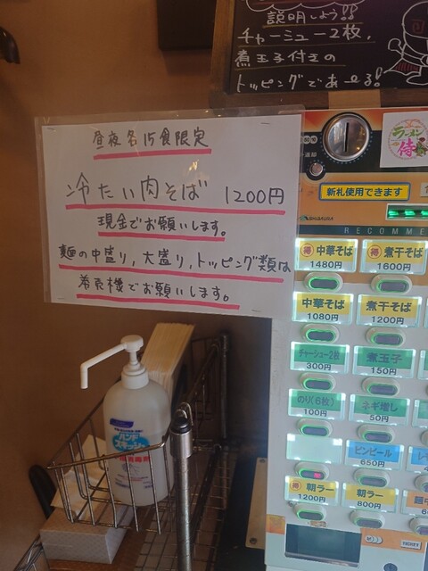 券売機で、まる得中華そばにチャーシュー、煮卵、のり、ねぎ増しを購入しカウンターにて渡します。