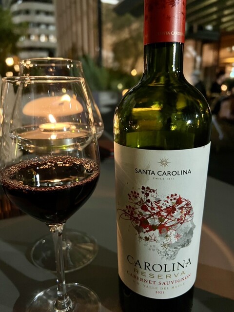 赤ワインはチリ産のカベルネソーヴィニヨン。美味しい。