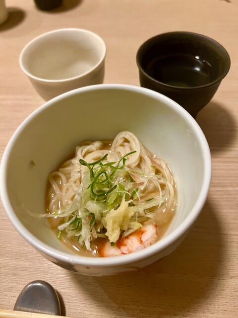 • 凌ぎ:海老出汁の冷製半田そうめん