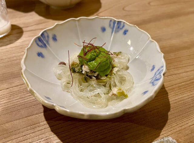 小皿(アテ)4品は頃合いを見て間隔を開けて運ばれてきます。そして高級割烹の様な手間をかけた料理たちはどれも非常に素晴らしい出来。