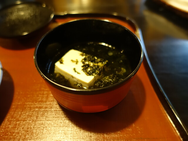 お豆腐に岩海苔のお吸い物でした。こちらもしみじみおいしいお吸いです。