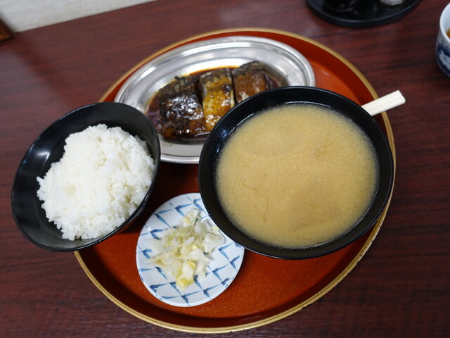 さば煮はみそ煮ではなくてあまから醤油で煮付けた感じ。