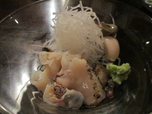 《一般的に食べる部位はコリコリ度合いが半端ないです。初めて食べる肝は深みのある苦みが美味な黒い部分。濃厚な白い部分。臭みも皆無で絶品です。》