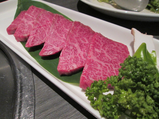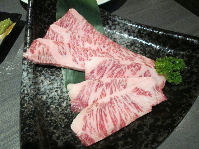 《肉の王者。逆に赤いサシ。やり過ぎ感あり(笑)。脂が口の中で液体になる。ウマイ脂。サラサラな脂。》