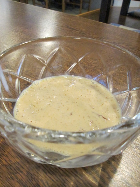 《白濁。おそらくはですが、わざわざ作ったのかも。それか茹で鍋が小さいのか。粘度もあり過ぎずなさ過ぎず。そして蕎麦つゆとの相性も抜群ですが、私の中でですが、今まで出会った蕎麦湯の中で1番美味しかったです。》
