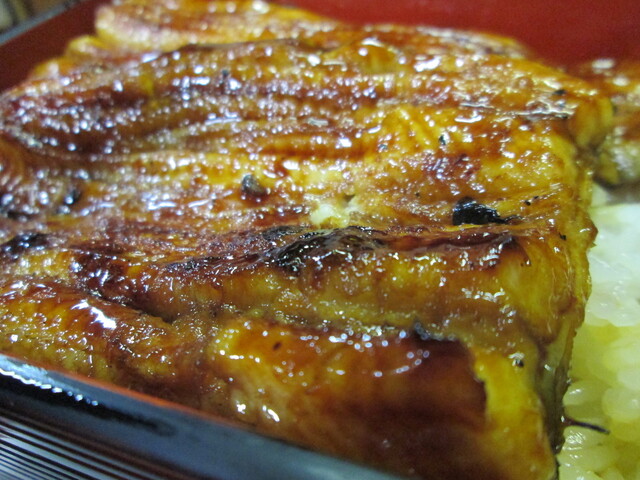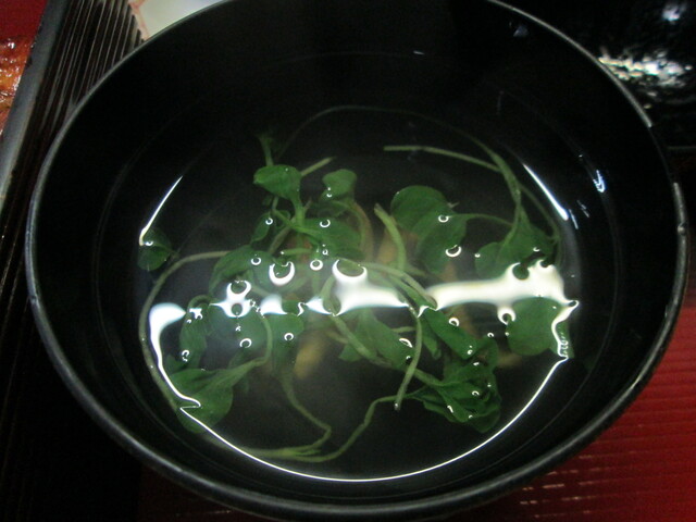 《先ずお茶から美味しいです。鰻は焼き色良くご飯に覆い被さっています。他に小鉢と漬物、肝吸いです。先ずは鰻を一口。うわぁ〜(T . T)涙が出そうなぐらい美味しいです。一口目にしか解らない鰻の旨味、風味が味覚を刺激します。肉厚な脂ののった身は主張し過ぎないタレと絶妙にマッチしてご飯と共に喉を流れ込みます。マジ旨いです(^o^)山椒はかけましたが、少し邪魔にさえ思えますし必要ないとさえ思います。唇ピリピリします^ ^奈良漬けみたいなのも、小鉢の緑も良い感じ(≧∇≦)肝吸いもワタクシみたいに優しい〜♪》