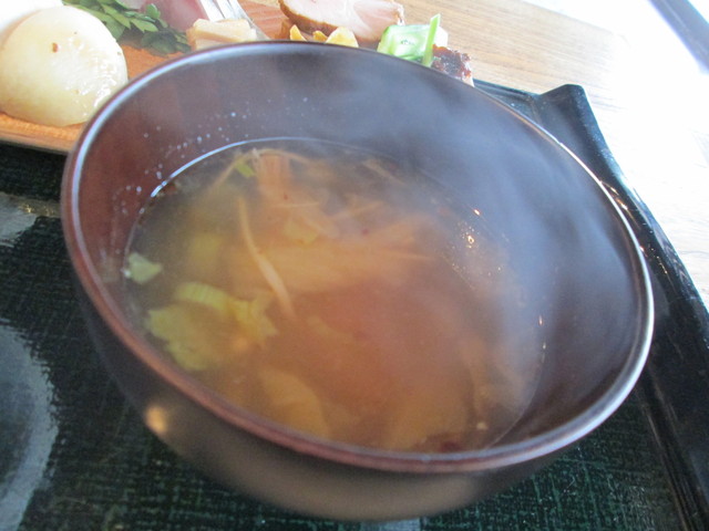 《味噌汁かと思って飲んでみましたら柚子の風味が…味噌汁ではないみたいです。ちゃんとメニュー見ましょうね。なかなかいいです。》
