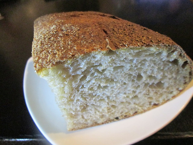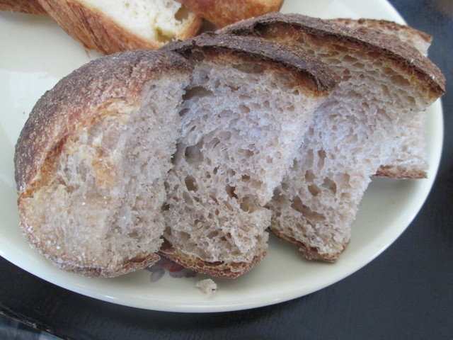 イチジクとクルミのパウンドケーキ。添えられた生クリームは植物製品を使わない液体に近いようなオーガニック。ケーキはほのかにメープルシロップが効いていて生クリーム共々美味しいです。