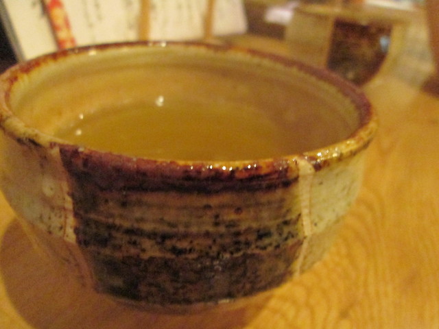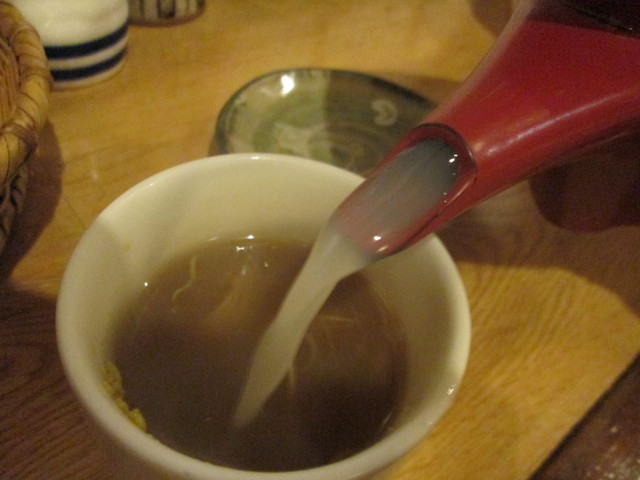 《お酒の徳利で出されます。濃いめでしたので蕎麦との相性が心配でしたが、蕎麦が水分を吸わないタイプでしたので相性は良かったです。》