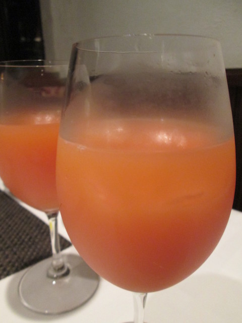 テーブルに着き膝にナフキンを乗せ、スタッフさんが来たので飲み物はビールとピンクグレープフルーツジュースだったか?にしました。