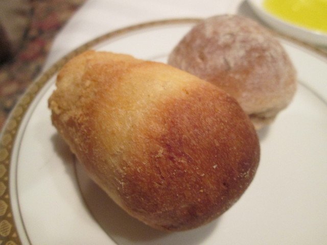 前菜、 松茸の天ぷら、高級生ハムとなんとか芋、魚料理、肉料理と野菜や栗、カラスミとイカのパスタ、ドルチェ、コーヒー、芳ばしいパン。