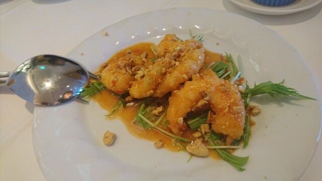軽くビールを飲みながら、「レタスの湯引き」「海老の麻辣炒め」「海老の玉子炒め」に点心で「海老餃子」「帆立の腸粉」「渡蟹の小籠包」「春巻」、デザートに「マンゴープリン」「フルーツタピオカ」を頂きました。
