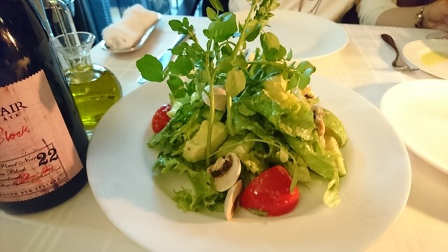 トスサラダのドレッシングも秀逸です。ラムチョップも、ステーキも、素材の味が生かされているのでくどくなく、いくらでも食べられそうな感じでした。