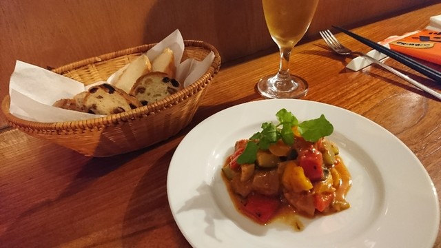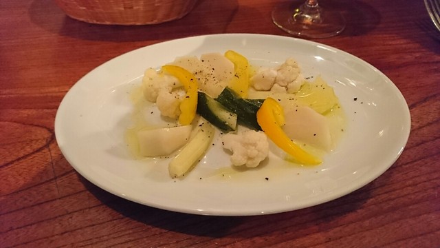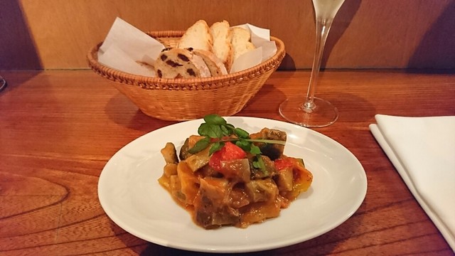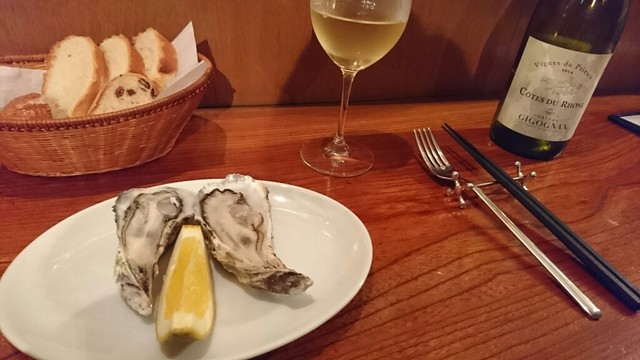 「味比べセット(泡・白・赤)」と「生牡蠣」「ラタトゥイユ」をオーダーします。