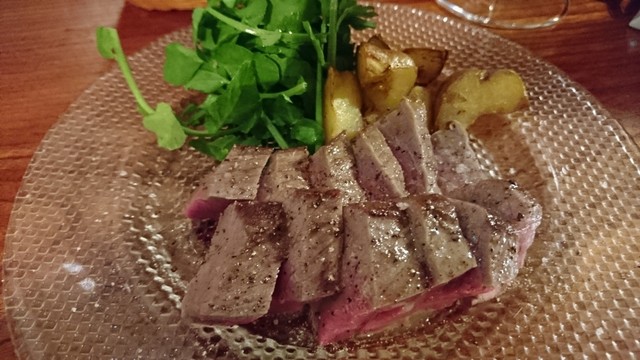 追加で、赤を一杯頂きます。気持ち良く呑みながら「手羽先」を初めてオーダーしました。燻製になっていて、美味しかったです!