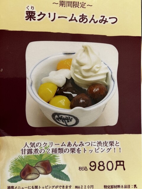 今回も相変わらず杏クリームあんみつ&白玉クリームあんみつ。