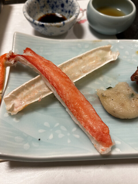 先付の蟹をふぐに、白ばい貝を子芋に。お造りの車海老を鮪に、帆立貝柱を鯛河霜づくりに。