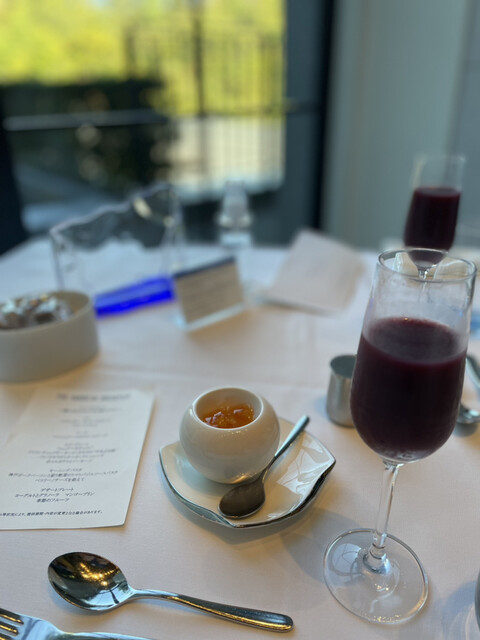 甘鯛の鱗焼きと松茸の炙り ツブ貝 銀杏 酢橘 焼き茄子のロワイヤルと松茸香るコンソメ