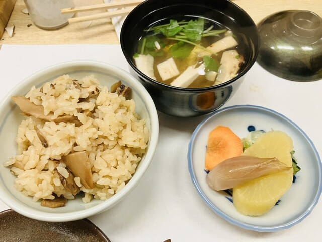 そして締めには、香り高い松茸ご飯とお味噌汁、香の物。