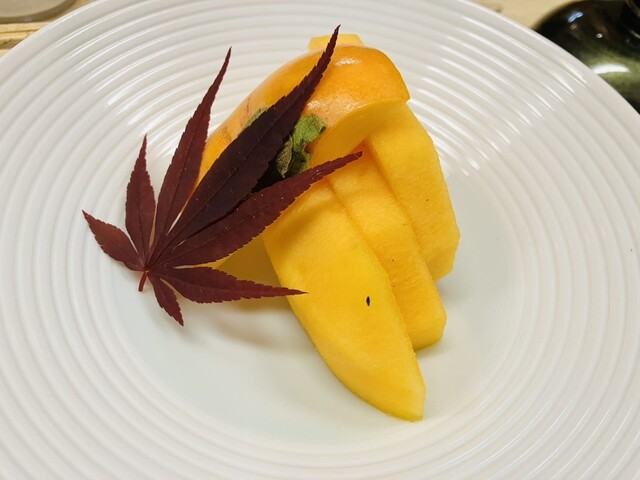デザートの柿、最後の一口まで秋を感じる献立でした。