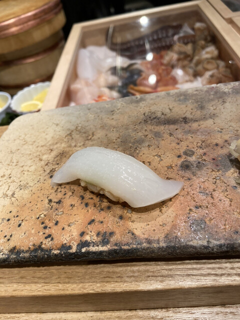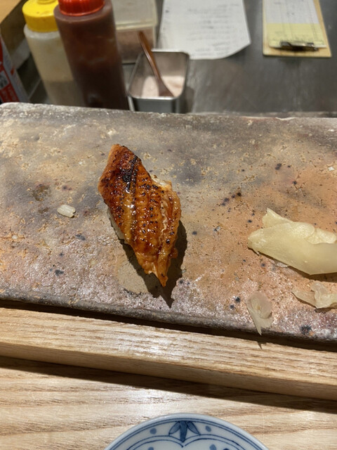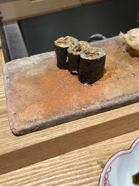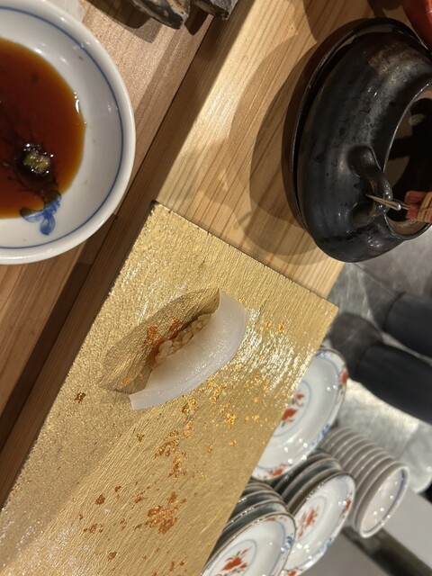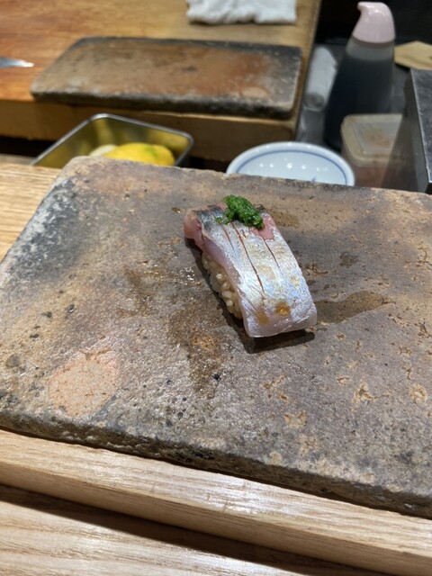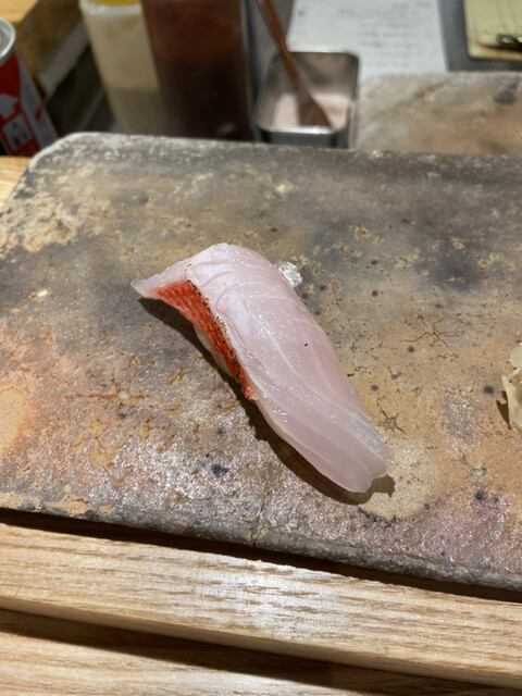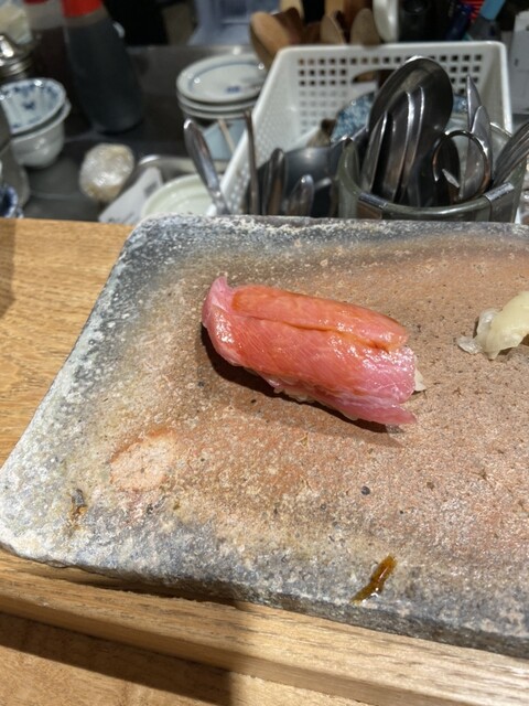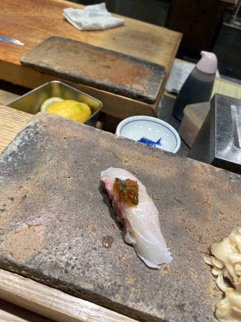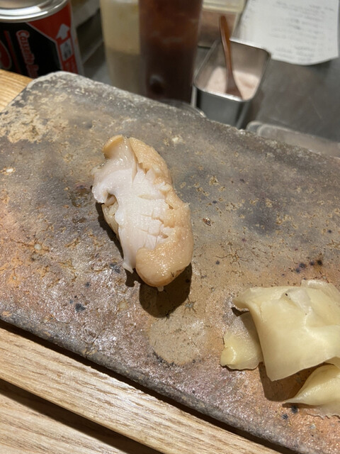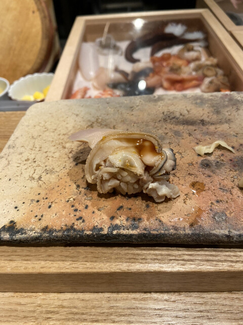 出来てました。そんなに沢山食べられなくなったので少しずつ色々なアテがつまめる盛り合わせは大好きです。この日は誕生日の前祝いでワインボトルを開けながらチビチビ堪能しました。心ゆくまでアテを頼んだら後は寿司。アテを食べすぎなせいかお任せ5貫が一周しか出来ません。