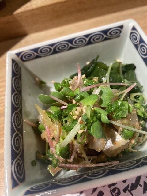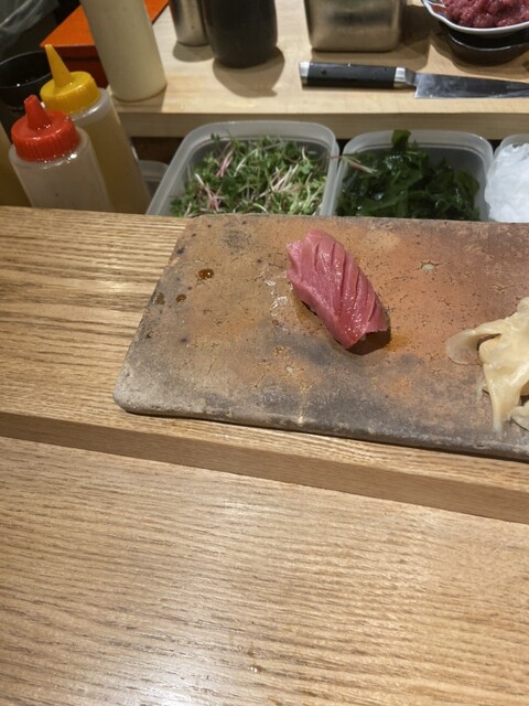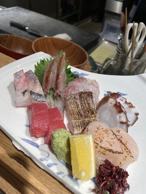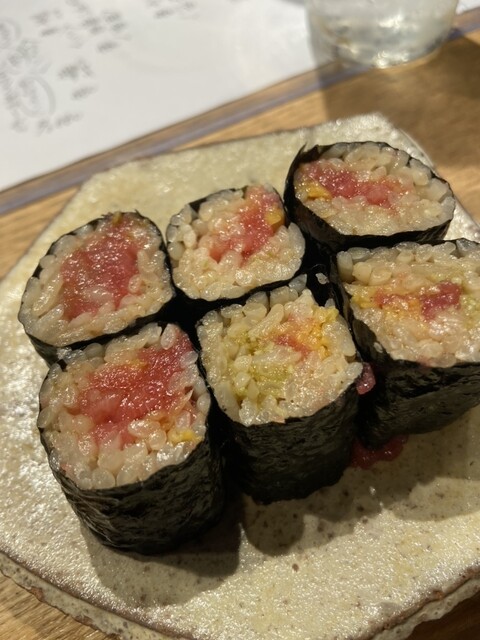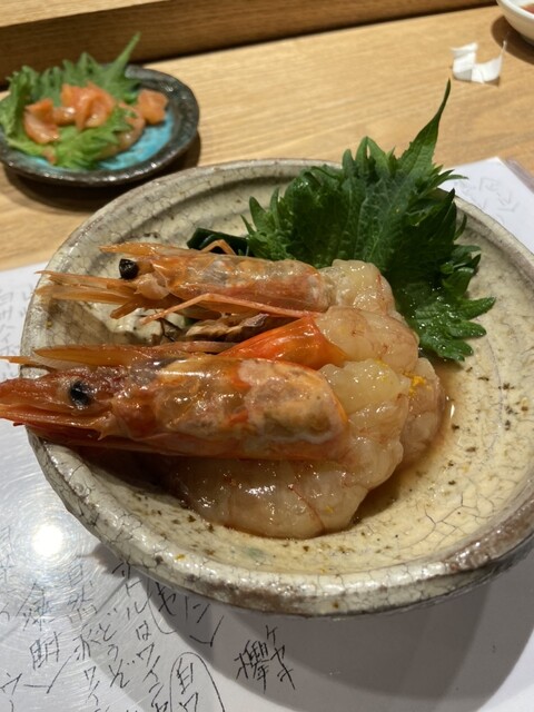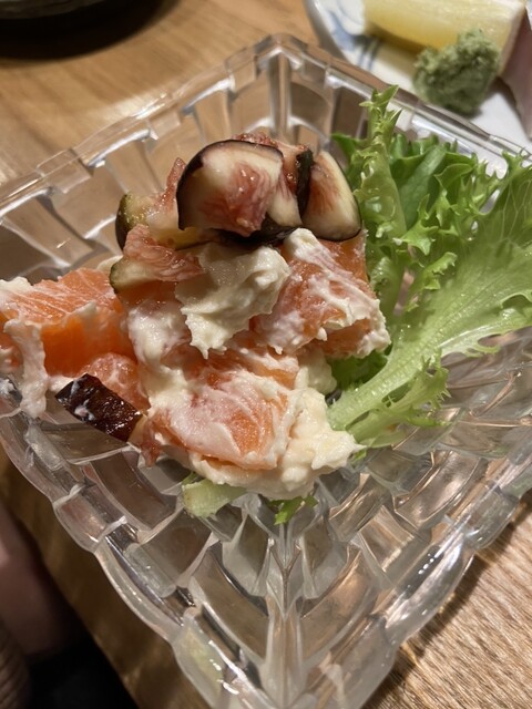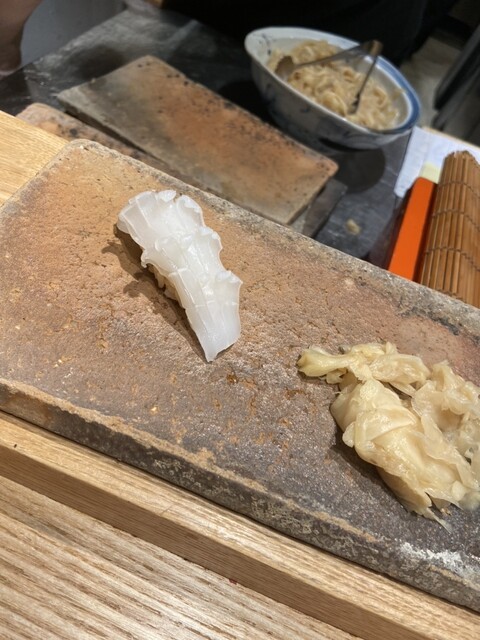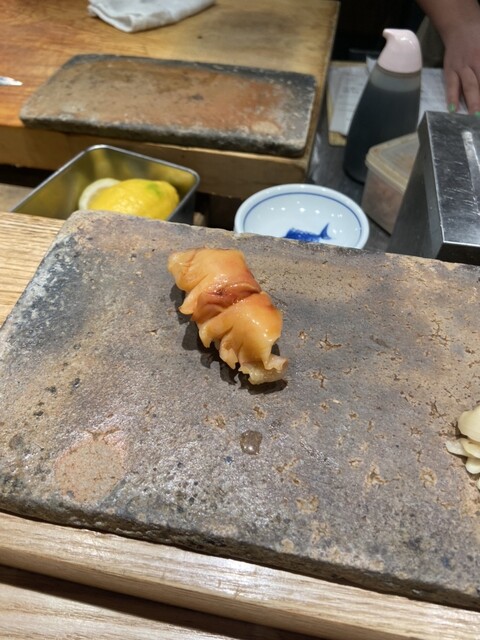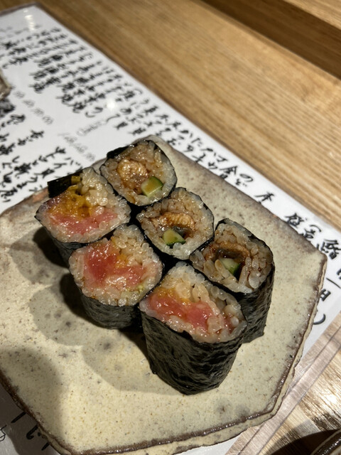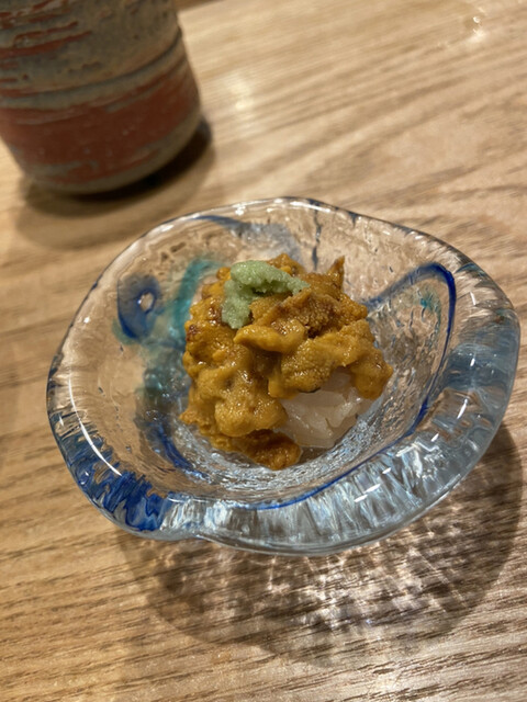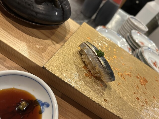 出来てました。そんなに沢山食べられなくなったので少しずつ色々なアテがつまめる盛り合わせは大好きです。この日は誕生日の前祝いでワインボトルを開けながらチビチビ堪能しました。心ゆくまでアテを頼んだら後は寿司。アテを食べすぎなせいかお任せ5貫が一周しか出来ません。